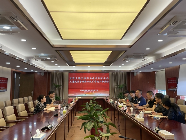 5月16日下午,上海交通职业技术学院工会主席王智平一行4人和上海建设管理职业技术学院工会主席黄晨晖一行3人,前来我校开展学习交流。会议由工会主席高功辉主持。