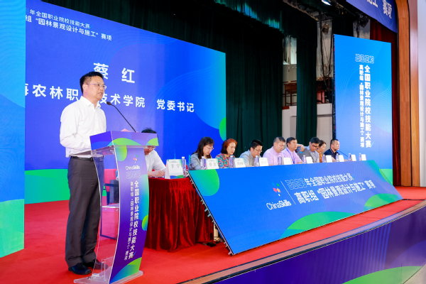 7月23日,2023年全国职业院校技能大赛高职组“园林景观设计与施工”赛项在我院开幕。上海市教育委员会职教处副处长马骏,上海市教育委员会教育技术装备中心书记、副主任周齐佩,松江区教育局局长陈小华,国家林业和草原局职业教育研究中心主任、全国林业和草原职业教育教学指导委员会副秘书长于宁,学院党政领导班子出席,全体参赛选手、领队,指导教师、赛项专家、裁判、仲裁等参加开幕式。院长陈立婧主持开幕式。