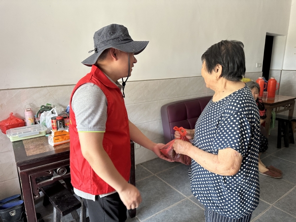 活动中,茹塘村工作人员便把提前泡好的馅料、粽叶、粽绳等材料整齐地摆放在桌子上。党员群众欢聚一堂,包起粽子来得心应手,一双双巧手来回翻转,捋粽叶、填糯米、封口、扎绳,不一会儿,一个个饱满漂亮的粽子便呈现在大家眼前。最后,走访慰问独居老人,了解其生活和健康情况,同时为老人们送上端午粽。