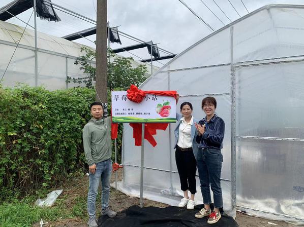 茹塘村党总支副书记戚兰英、实训基地党支部书记许昊、首个“草莓科技小站”站长杨平老师参加了揭牌仪式。
