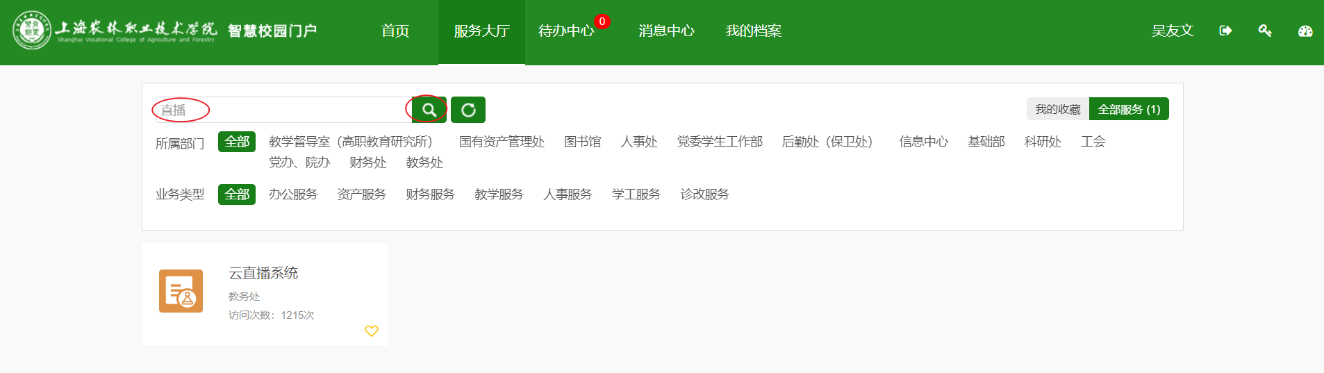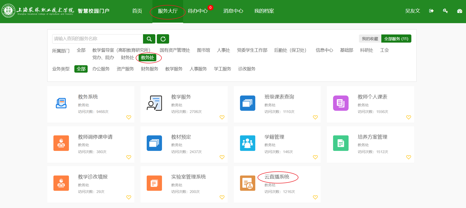也可以依次点击“服务大厅”“教务处”“云直播系统”。