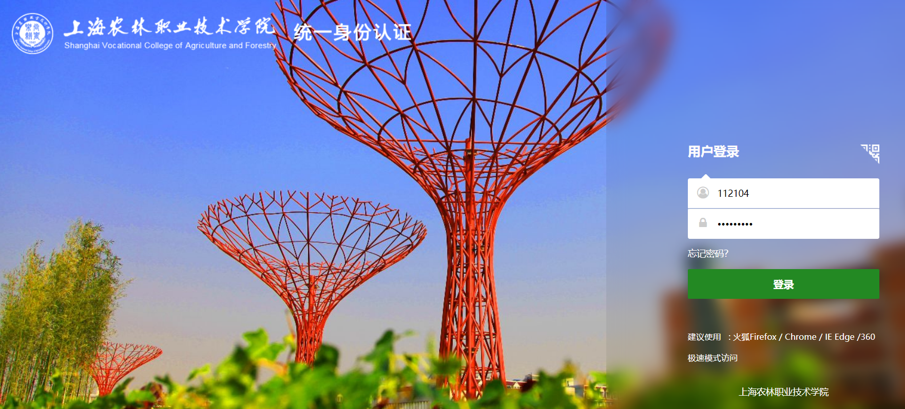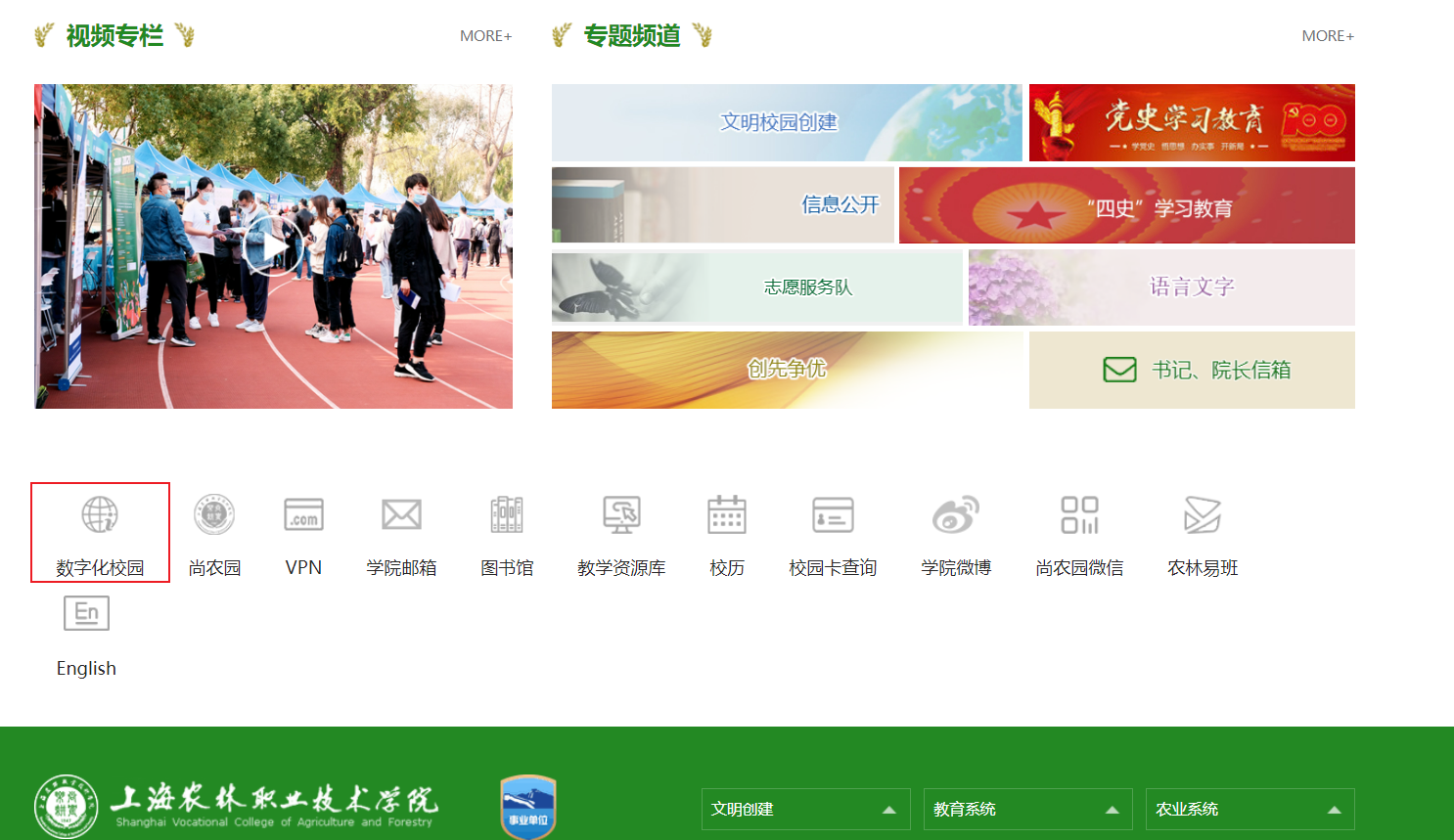 1、在电脑浏览器上,打开上海农林职业技术学院官网,点击“数字化校园”图标。支持Edge、360极速模式、Chrome、火狐FireFox等主流浏览器。