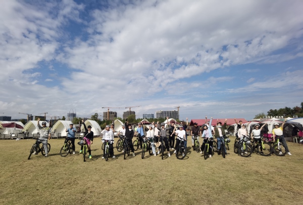 早上九点,老师们准时从学校出发,阳光明媚,丰富的趣味小游戏,美味的烧烤,美丽的湖景,让参与活动的老师们心情愉悦、赞不绝口。吃饱喝足后,在教练的指导下,老师们学习佩戴安全头盔、自行车控制方法后,迎着习习微风正式开始环湖骑行。滴水湖又名芦潮湖,位于浦东新区南汇新城镇滴水湖呈正圆形,直径约2.6公里,总面积约5.56平方公里,被第九批国家水利风景区。