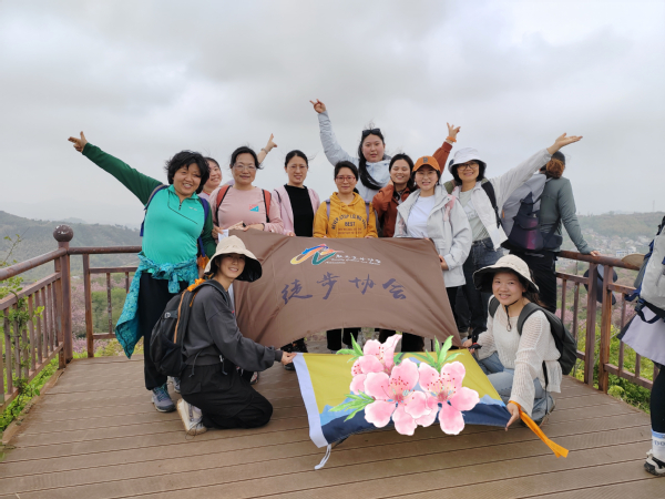 上午八点,老师们在学院一教集合统一前往大岚镇。在大岚古道入口处,领队认真讲解了本次活动的注意事项,并带领大家进行出发前热身,随后行程正式开始。13公里的徒步路程,包括许多台阶和陡坡,还有部分路段是野径泥路,对参加户外徒步经验比较少的老师们,是个不小的挑战。老师们互相鼓励、互相帮助,顺着茶田小路深入茶田腹地,一路上各种山花烂漫,登上茶田山顶,延绵广阔的茶园山地此起彼伏,在天然氧吧里尽情感受春天。