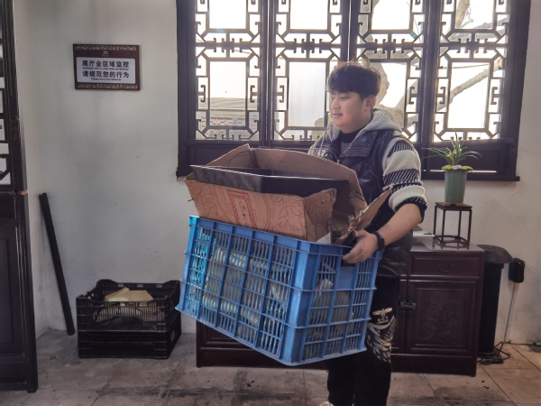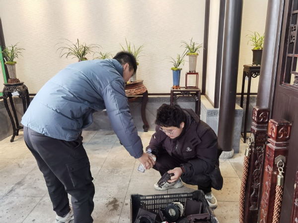 首届主题为“百春方半,九畹初馨”的“上海春兰展”即将举办,2024年3月2日基地工作人员在上海醉白池公园进行紧张的布展工作。