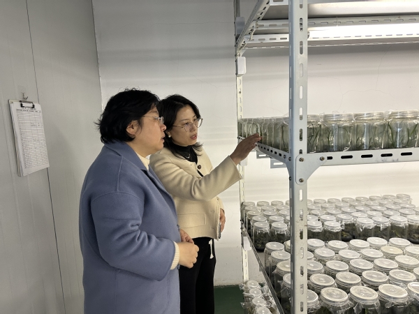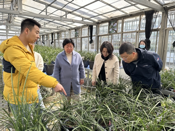 在国兰与花菖蒲诱变育种负责人孙叶研究员的陪同下,一行人先后参观了兰花组培室、兰花科普展厅、中国兰花种质资源圃,双方并就兰花杂交育种、种苗繁育关键技术、产业化等方面开展了深入交流。