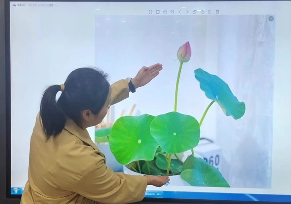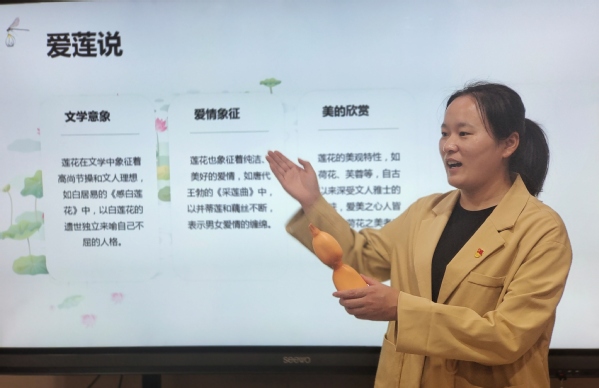 课程从莲说起,莲与廉发音相同,有清雅,洁净,正真之义。课上大家认真学习莲“出淤泥而不染,濯清涟而不妖”的精神品质,并动手参与。从种植一株碗莲开始,将莲的优秀品质根植在心中。莲从出水到花谢历经夏秋两季,在美化环境的同时,又供人们观赏。莲实可入药,莲藕做佳肴,甚至霜中的败叶也能拿来做食品包装用。这种无私奉献的精神值得我们学习传颂。