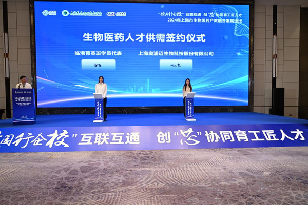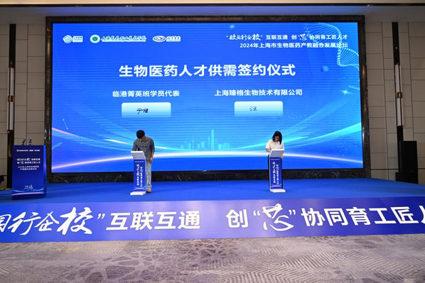 论坛期间,举行了首期“临港菁英班”人才签约及成果路演活动,100%的签约率充分展示了产教融合在人才培养方面的显著成果。“临港菁英班”人才培养成果展示暨生物医药人才供需双选会吸引了众多学生和企业的关注,为生物医药企业和院校搭建了一个交流与合作的平台,为产业发展注入了新的活力。