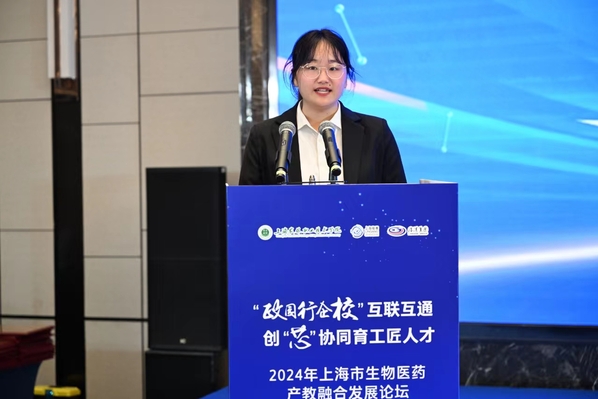 论坛的主旨报告环节,上海市产教融合促进会会长姜晓敏教授和上海临港奉贤经济发展有限公司党委委员马强分别从职业教育、园区实践等角度对生物医药产教融合发展进行了交流分享。