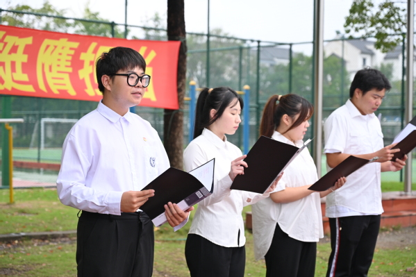 国旗飘扬,激励着我们奋勇前行。花卉241宋蕊蕊、园林(中)213顾俊杰、设施212唐奕鑫、生技241刘曾为全体师生带来朗诵《盛世中华 荣耀75载》,在朗诵声中表达了对祖国母亲最热烈、真挚的情感,展现了新时代青年不负时代、不负韶华的责任与担当。