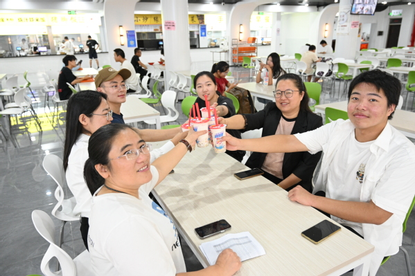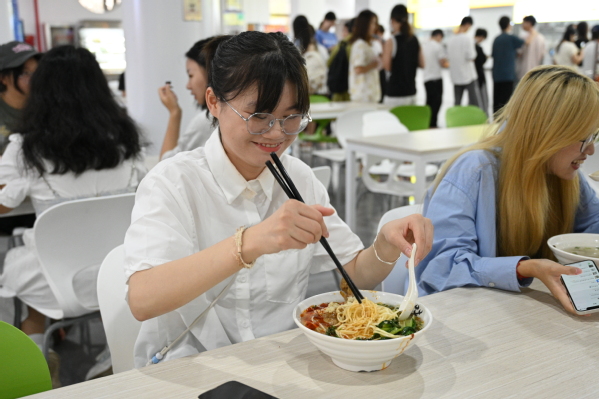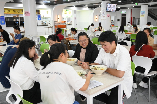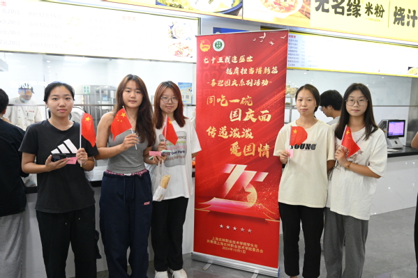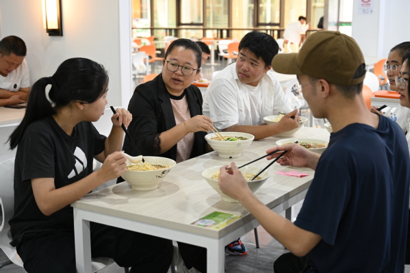 10月1日中午,由学工部、院团委举办的“同吃国庆喜面”活动在学生第一食堂举行,学工部部长高东菊和部分师生代表同吃“国庆面”,共同分享祖国的伟大成就,共叙爱国情怀。