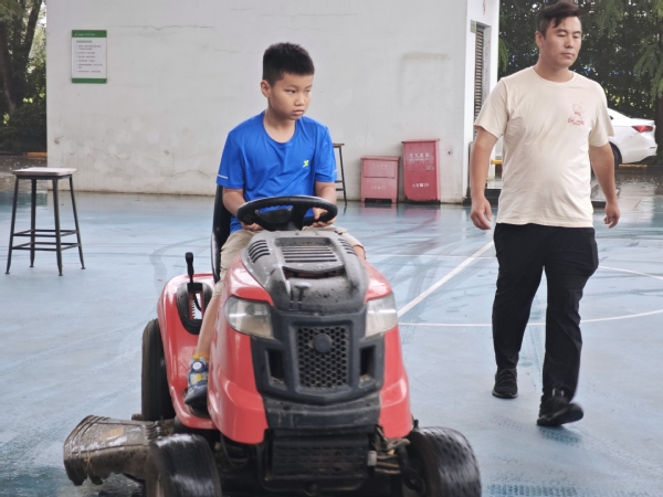 在“小小草坪理发师”体验活动上,刘洋老师带同学们了解了草坪修剪车使用的要点和工作原理,虽然因天气原因并未实现在草坪上操作,但也在露天棚下体验了开草坪车,让学生们了解草坪养护非常重要,知道城市绿化工的伟大。
