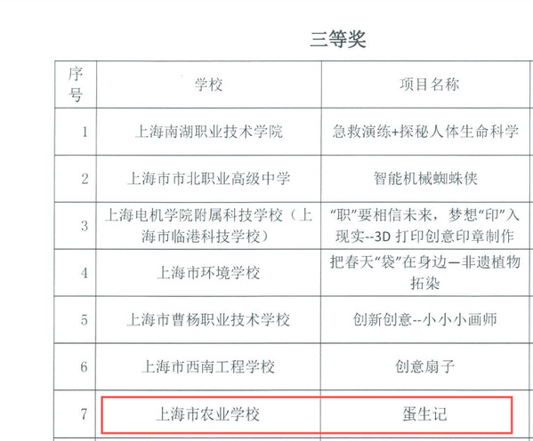 近日,从上海市学生职业体验日活动组委会获悉,我校2024年度职业体验活动中有两个项目获奖,“农田奇遇记”项目获得项目最佳设计一等奖,“蛋生记”项目获得最佳项目设计三等奖。