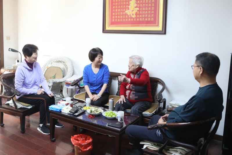 学院党委副书记陈谊代表学院党政走访慰问了93岁高龄退休老教师王紫斐老师,王老师90多岁高龄,思路清晰,耳清目明,与陈谊书记亲切欢快交谈。本次活动走访慰问了我校80岁以上、身体状况欠佳的老教师60位。