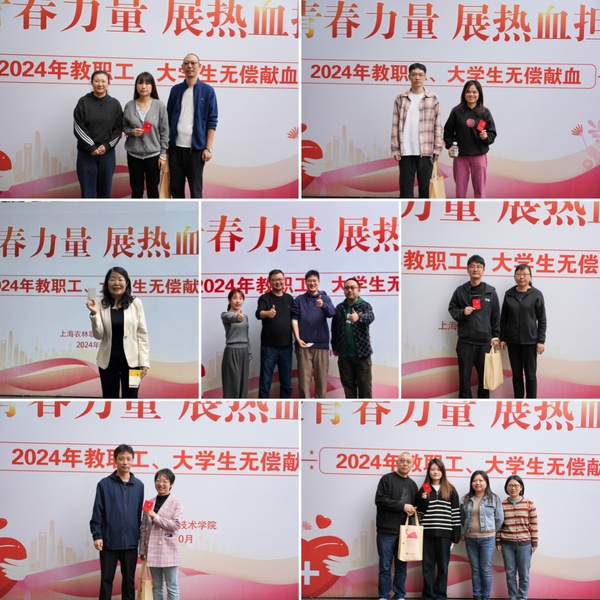 10月28日上午 8:30,上海农林职业技术学院的体育馆内爱心涌动,一场温暖而意义非凡的无偿献血活动正在这里举行。11名青年教师积极响应号召,其中7位成功献血,为需要帮助的人们送去了宝贵的生命之源。