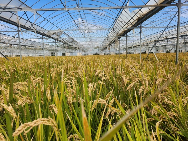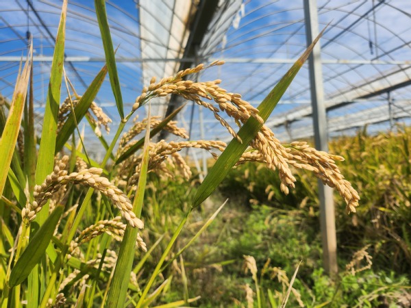 近日大棚内的水稻逐渐成熟,尽管经历了几次台风,但水稻植株依旧坚挺,金黄色的稻穗在阳光下闪闪发光,仿佛在向辛勤耕耘的人们致以最诚挚的感谢。经过初步的测产,今年大棚内的水稻产量达到了预期目标,品质也十分优良。这次试种水稻的成功为我们后续种植管理积累了宝贵的实践经验,我们将继续探索水稻种植的技术和方法,为农业的发展贡献更多的智慧和力量。