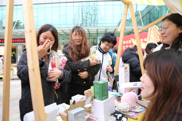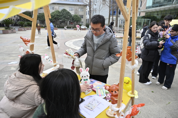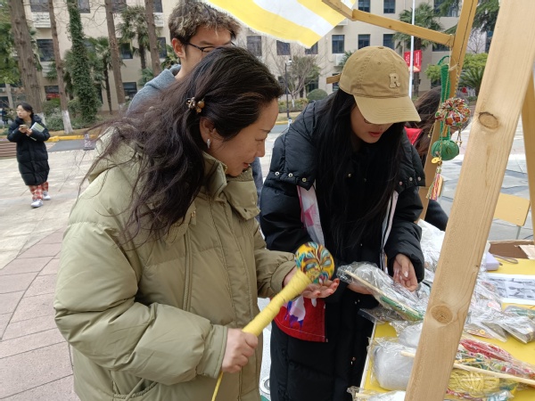 数字经济与创意系精心策划的“传承雷锋精神,共筑绿色梦想”摊位吸引了众多师生。摊位设置塑料瓶、旧书籍等可回收物兑换香囊包,以及志愿者凭100小时服务时长兑换艾草锤的活动。香囊包含艾草等香料,有驱虫醒脑的功效;艾草锤由天然材料制成,实用环保。现场气氛热烈,连来自法国亚眠商学院的学生们也被深深吸引,纷纷驻足体验。