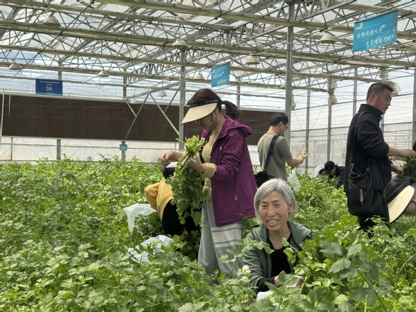 体验采摘乐趣,感受田园生活。活动第二站,老师们来到黄桥村附近的蔬菜种植基地。在技术人员的专业指导下,大家亲手采摘当季新鲜蔬菜,从翠绿的芹菜到粗壮的萝卜,每一株作物都展现着大自然的馈赠。这场别开生面的农事体验,不仅让大家重温了田园生活的质朴乐趣,更深刻体会到现代农业科技与传统农耕文化的完美融合。