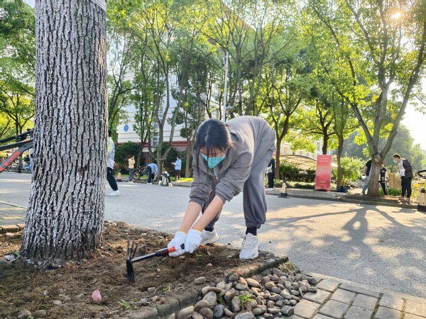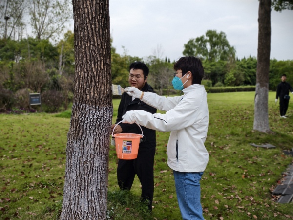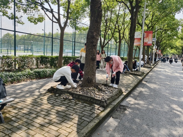 华东政法大学商学院 2434班 韩晟同学表示今天我们做了一件很有意义的事,大家一起进行了长达四个多小时的劳动教育,主要内容是为树刷白和松土。大家低着头,弯着腰,共同刷好每一棵树,装点着美丽的华政园。当我们经过思贤桥,看着两旁披上“新衣服”的树木,自豪与欣慰会油然而生。