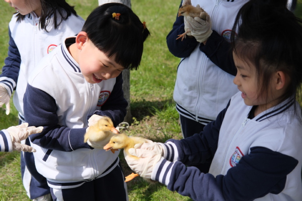 最受欢迎的当属品牌项目“农场里的语文课”,将语文课文《小公鸡和小鸭子》搬进现实场景。通过与小鸡和小鸭的真实接触,加深学生对课文的理解,结合老师的生动讲解,直观的学习动物特征及生活习性。这种“情景+理论”的创新教学模式,让知识从平面走向立体,极大激发了学生的探索欲望,现场互动热烈。