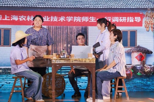 “农业强国,上农何为”篇,聚焦学校在服务国家乡村振兴战略和“一带一路”倡议方面的实践与探索。微党课《立德树人筑根基,服务乡村践初心》号召上农人要牢记习近平总书记对涉农高校的嘱托,“以立德树人为根本,以强农兴农为己任,拿出更多科技成果,培养更多知农爱农新型人才”。访谈党课《社会服务,我是先锋》,智慧农业工程系副主任王妍、上农科技服务队杨平、援疆教师熊昭娣讲述了他们分别在打造的“技术下沉+精准赋能”社会服务矩阵、三次赴青海果洛州进行农作物种植技术帮扶的经历、在喀什莎车县援疆的五百多个日夜的点滴故事,生动展现了上农人以服务“三农”事业为己任,立足上海、服务全国的生动实践。情景短剧《新时代的牧羊之歌》再现了学校“五美”服务队帮助安徽六安芝麻村养羊户探索电商直播销售路径的故事,展现了学院主动融入长三角一体化发展国家战略的主动担当。在情景展示《青春志愿行》中,上农学子分享了参与进博会、花博会、“三下乡”等志愿服务的经历,他们用实际行动践行着“为中国式现代化建设贡献青春力量”的郑重承诺。上农人立足上海、服务全国,走向世界的愿景,在《新农人的出海日记》里,在植物科学技术系学生“一带一路”暨金砖国家技能大赛上分享半封闭植物工厂智能环控技术的场景再现中看见未来。