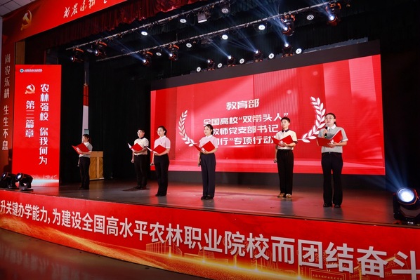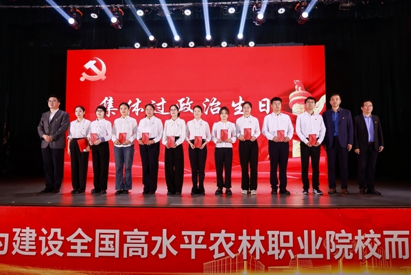 “农林强校,你我何为”篇,号召全体上农人勇担兴农强国使命,为建设全国高水平农林职业院校而团结奋斗。微党课《我是农林+:问需大地落笔成章——田野间的初心答卷》引领全体党员以立德树人铸魂育农,以教育家精神点亮强校之路,共同奋进学院事业高质量发展新篇章。由全国高校“双带头人”教师党支部书记“强国行”专项行动团队带来的情景党课《破茧成蝶翱翔蓝湾》,生动地演绎了临港新片区生命蓝湾产教联合体发挥党建的引领力、聚合力、战斗力,让教育培养人才、人才驱动创新、创新反哺教育的创新实践。师生共同带来的主题朗诵,全面展示了学校以高质量党建引领关键办学能力提升的探索实践,表达了上农人躬耕沃土践初心、产教融创铸匠魂的坚定信念。最后的集体过政治生日、重读入党申请书、重温入党誓词,全体党员回望入党心路,进一步坚定入党初心,在立德树人、强农兴农的路上,立足岗位作出更大贡献。