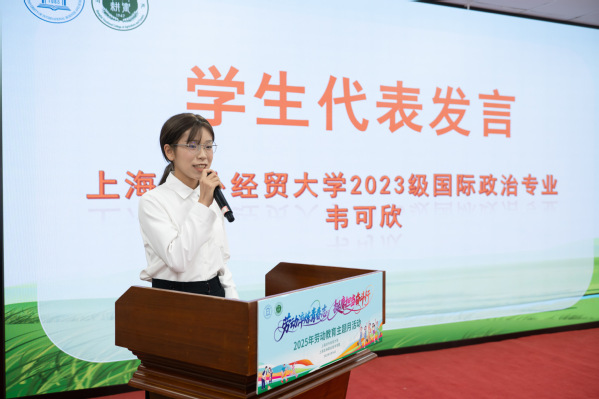 沈艺在启动仪式上致辞。她指出,本次活动是上海对外经贸大学2023年获批的教育部思想政治工作精品项目——“六三三”劳动教育体系的又一落地举措,对促进大中小学思想政治教育一体化具有积极意义。她强调,大中小学不同学段的学生都要在劳动中提升相应的能力,以劳树德、以劳增智、以劳强体、以劳育美、以劳创新,共同体验“劳动最光荣、劳动最崇高、劳动最伟大、劳动最美丽”的深刻内涵。