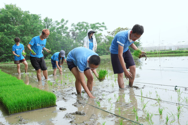 五月的田间地头,一群“小园丁”和“小农夫”忙得不亦乐乎。5月16日,一场别开生面的劳动教育实践活动在实训基地展开。由我院、上海对外经贸大学、上海对外经贸大学附属松江实验学校教育集团联合开展的劳动教育月活动拉开帷幕,80名大中小学生齐聚一堂,共同参与插秧、番茄整枝打杈等劳动项目,在田间地头书写劳动教育大中小一体化的生动篇章。上海对外经贸大学党委副书记、副校长沈艺,学院党委副书记、副院长邵阳,上海对外经贸大学附属松江实验学校党总支书记张辉以及相关职能部门负责人参加了活动。