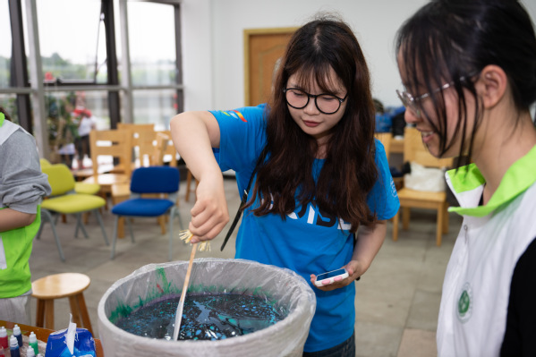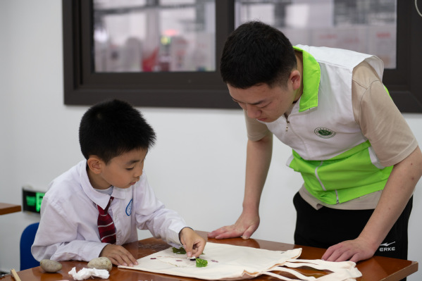 插秧、整枝打杈劳动实践完成后,同学们还参与了植物拓印和漆扇制作体验活动。
