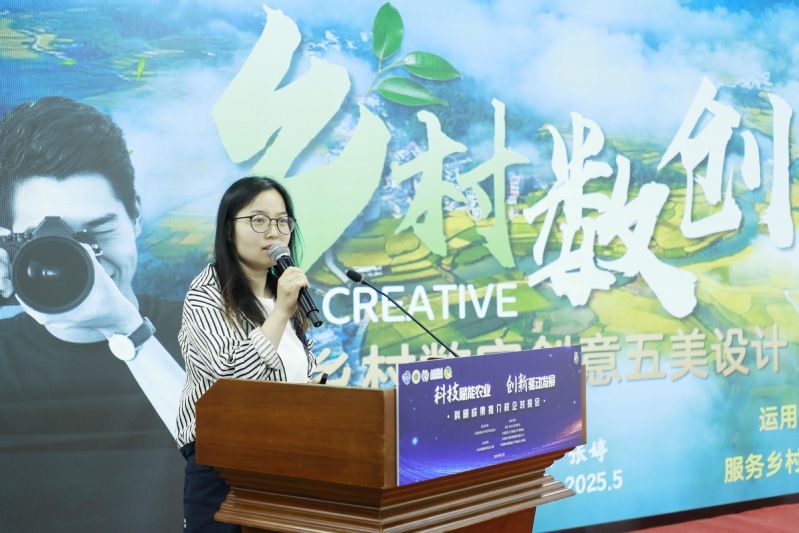 乡村数创专业技术服务团队负责人张婷展示“乡村数字创意五美设计”,呈现科技与文化创意融合为乡村发展带来的全新活力。这些成果凝聚着科研人员的心血,充分展现了科技赋能农业的巨大潜力。
