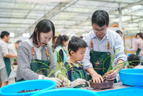 以传统文化与生活美学为主题。在兰花知识科普与家庭园艺养护技巧环节中,学习如何欣赏与培育兰花,了解家庭园艺养护知识。兰石盆景制作体验让大家感受到传统盆景的艺术魅力;中草药知识、真假艾草识别以及艾草香包制作,让大家接触到传统中医药文化;茶艺与点茶技艺体验让大家领略到中国茶文化的博大精深。