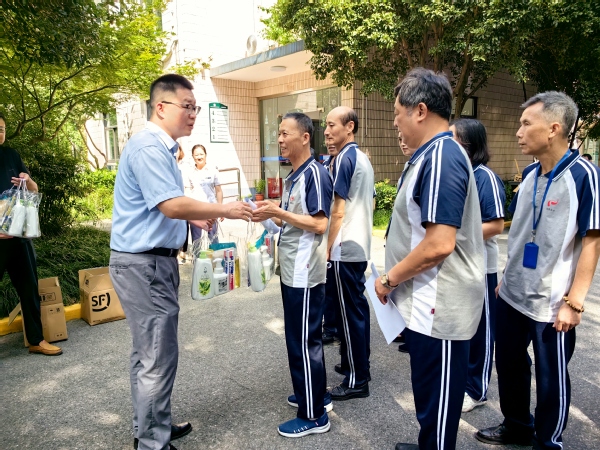 慰问组为他们送去了清凉消暑慰问品,详细询问了他们的工作情况,感谢他们在高温下的坚守与付出,并叮嘱大家注意防暑降温,确保身体健康和工作安全。“送清凉”慰问活动是学院工会长期坚持的一项服务工作,它以实际行动践行服务教职工的根本宗旨,也是“我为群众办实事”的鲜活体现。此次慰问活动,如夏日甘霖,让一线员工在盛夏酷暑中实实在在感受到了工会“大家庭”的浓浓温情和学校的真心关怀。