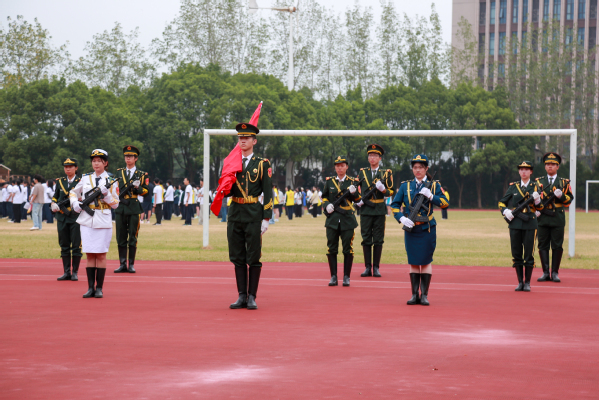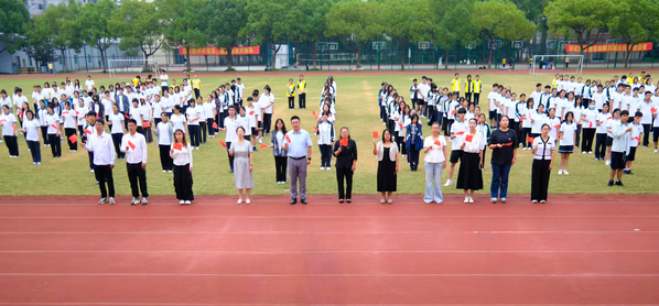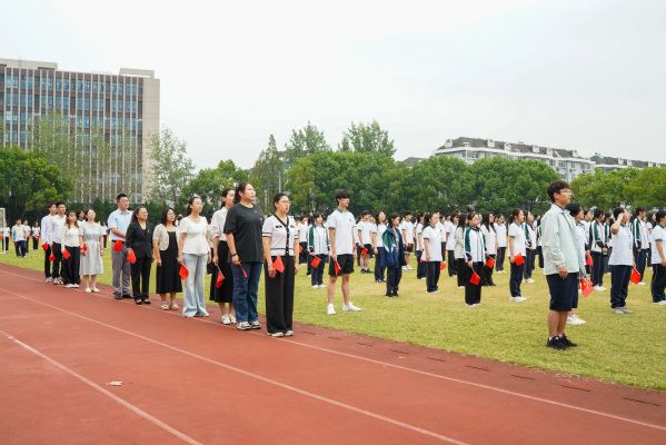 在雄壮激昂的国歌声中,鲜艳的五星红旗冉冉升起,迎风飘扬。全体师生肃立注目,以坚定的目光和庄重的姿态,向伟大祖国致以崇高敬意和深切热爱。