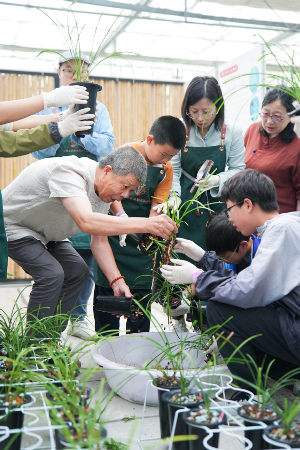 以传统文化与生活美学为主题,在兰花知识科普与家庭园艺养护技巧环节中,学习如何欣赏与培育兰花,了解家庭园艺知识。兰石盆景制作体验让大家感受到传统盆景的艺术魅力;中草药知识、真假艾草识别以及艾草香包制作,让大家接触到传统中医药文化;茶艺与点茶技艺体验则领略到中国茶文化的博大精深。