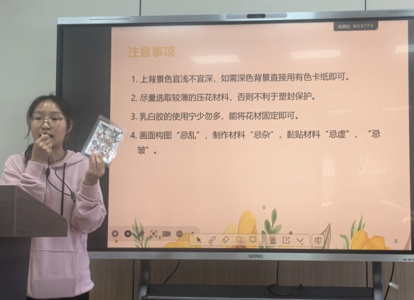 课程实践环节同样丰富多彩。在“传统劳动教育”主题中,教师们亲手参与咸鸭蛋制作,体验传统腌制技艺所蕴含的劳动智慧与文化传承;在“现代劳动教育”主题中,大家则动手制作压花书签,将自然美学融入创意实践,感受劳动教育中“手脑并用、寓教于乐”的教学理念。