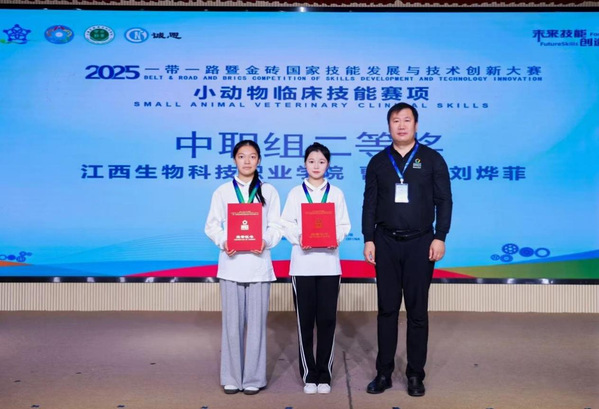 10月31日至11月3日,2025一带一路暨金砖国家技能发展与技术创新大赛之小动物临床技能赛项决赛在上海农林职业技术学院举办。大赛由金砖国家工商理事会中方理事会、一带一路暨金砖国家技能发展国际联盟、“一带一路”暨金砖国家技能发展与技术创新培训中心主办,中国发明协会、教育部中外人文交流中心联合主办,金砖国家工商理事会技能发展、应用技术与创新中方工作组承办,上海农林职业技术学院、上海诚恩医学科技有限公司、北京嘉克新兴科技有限公司、厦门市金砖未来技能发展与技术创新研究院联合承办。
